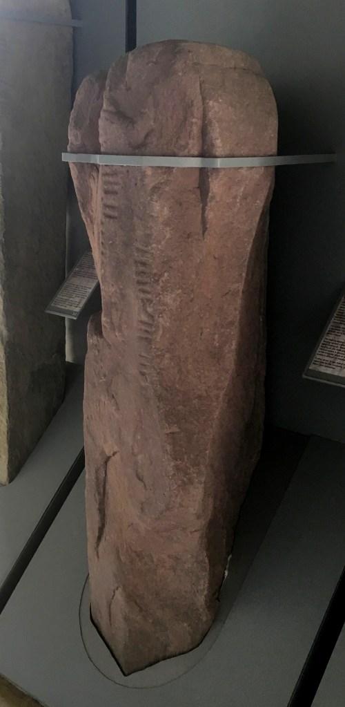 A pillar stone, it was found in 1841, and came later to the University from the Royal Cork Institution.